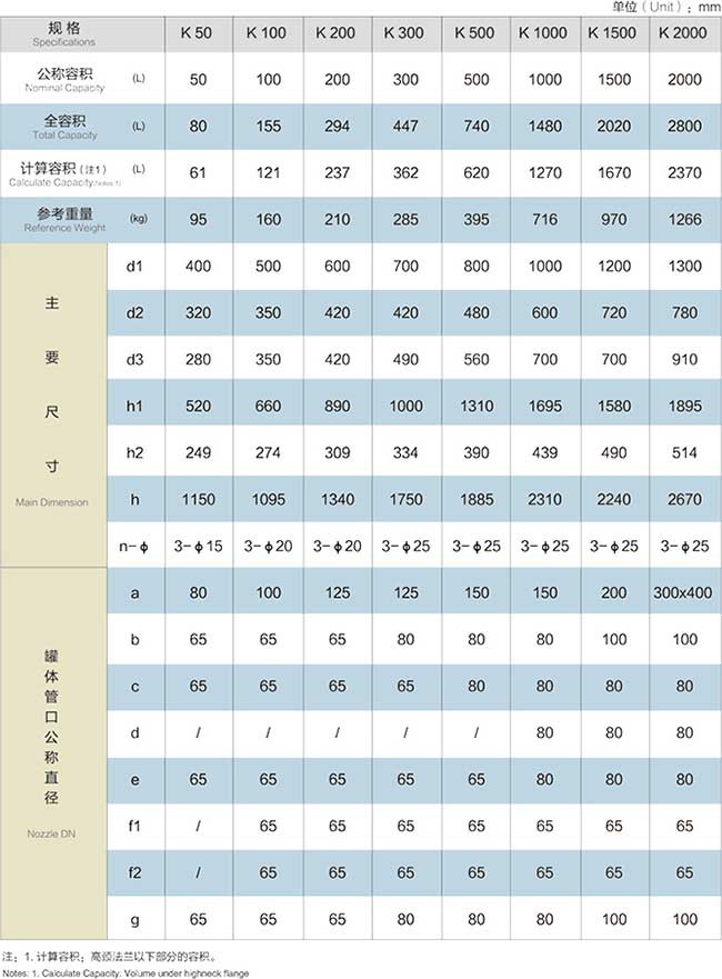 2.搪玻璃開式反應釜參數表